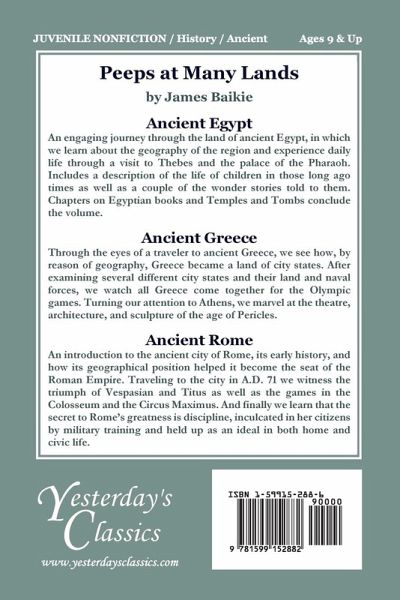 An engaging journey through the land of ancient Egypt, in which we learn about the geography of the region and experience daily life through a visit to Thebes and the palace of the Pharaoh. Includes a description of the life of children in those long ago times as well as a couple of the wonder stories told to them. Chapters on Egyptian books and Temples and Tombs conclude the volume. Attractive black and white illustrations complement the text. Suitable for ages 9 and up.
