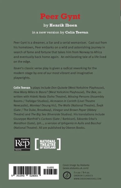 Peer Gynt is a dreamer, a liar and a serial womaniser. Cast out from his hometown, Peer embarks on a wild and astonishing journey in search of fame and fortune that takes him from Norway to Africa and eventually back home again. An exhiliarating tale of a life lived on the edge. Ibsen's classic verse play is given a radical reworking for the modern stage by Colin Teevan, one of our most vibrant and imaginative playwrights. This version of Peer Gynt opened at Dundee Rep in September 2007 in a production by the National Theatre of Scotland.