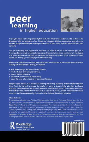 While peer learning is often used informally by students - and for many can form an essential part of their HE experience - this book discusses methods of developing more effective learning through the systematic implementation of peer learning approaches.