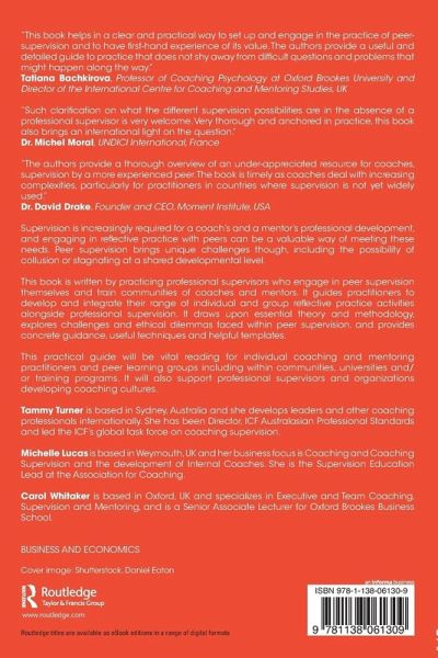 This book is written by practicing professional supervisors who engage in peer supervision themselves and train communities of coaches and mentors. It guides practitioners to develop and integrate their range of individual and group reflective practice activities alongside professional supervision. It draws upon essential theory and methodology, explores challenges and ethical dilemmas faced within peer supervision, and provides concrete guidance, useful techniques and helpful templates.