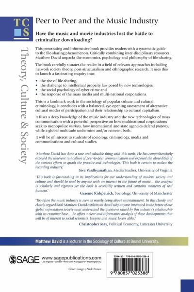 Matthew David is a Senior Lecturer in Applied Social Science at Durham University, and has undertaken research in the areas of new social movements, online data-services in higher education, online training in rural areas and forms of free online music sharing. He is author of Science in Society (Palgrave 2005) and Peer to Peer and the Music Industry (SAGE 2010), and co-author of Social Research (SAGE, latest edition 2011).