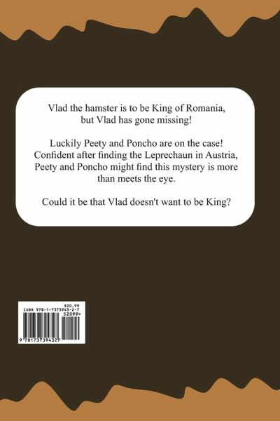 Vlad the hamster is to be King of Romania, but Vlad has gone missing! Luckily Peety and Poncho are on the case! Confident after finding the Leprechaun in Austria, Peety and Poncho might find this mystery is more than meets the eye. Could it be that Vlad doesn't want to be King?