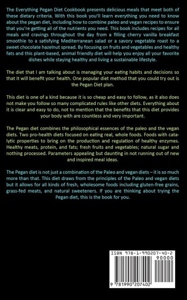 The Everything Pegan Diet Cookbook presents delicious meals that meet both of these dietary criteria. With this book you'll learn everything you need to know about the pegan diet, including how to combine paleo and vegan recipes to ensure that you're getting all of the nutrients you need. This book includes recipes for all meals and cravings throughout the day from a filling cherry vanilla breakfast smoothie to a satisfying Mediterranean salad or a savory vegetable roast to a sweet chocolate hazelnut spread. By focusing on fruits and vegetables and healthy fats (nuts, seeds, avocados, etc.), this plant-based, animal friendly diet will help you enjoy all your favorite dishes while staying healthy and living a sustainable lifestyle. The diet that I am talking about is managing your eating habits and decisions so that it will benefit your health. One popular diet method that you could try out is the Pegan Diet plan. This diet is one of a kind because it is so cheap and easy to follow, as it also does not make you follow so many complicated rules like other diets. Everything about it is clear and easy to do, not to mention that the benefits that this diet provides your body with are countless and very important. The Pegan diet combines the philosophical essences of the paleo and the vegan diets. Two pro-health diets focused on eating real, whole foods. Foods with catalytic properties to bring on the production and regulation of healthy enzymes. Healthy meats, protein, and fats; fresh fruits and vegetables; natural sugar and nothing processed. Parameters appealing but daunting in not running out of new and inspired meal ideas. The Pegan diet is not just a combination of the Paleo and vegan diets - it is so much more than that. This diet draws from the principles of the Paleo and vegan diets but it allows for all kinds of fresh, wholesome foods including gluten-free grains, grass-fed meats, and natural sweeteners. If you are thinking about trying the Pegan diet, this is the book for you.