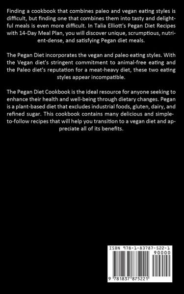 The Pegan Diet incorporates the vegan and paleo eating styles. With the Vegan diet's stringent commitment to animal-free eating and the Paleo diet's reputation for a meat-heavy diet, these two eating styles appear incompatible. The Pegan Diet Cookbook is the ideal resource for anyone seeking to enhance their health and well-being through dietary changes. Pegan is a plant-based diet that excludes industrial foods, gluten, dairy, and refined sugar. This cookbook contains many delicious and simple-to-follow recipes that will help you transition to a vegan diet and appreciate all of its benefits.