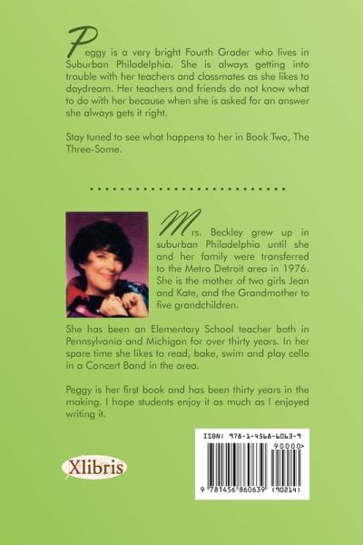 Peggy is the story of a very bright Fourth Grader who lives in Suburban Philadelphia. She is always getting into trouble with her teachers and classmates as she likes to daydream. Her teachers and friends do not know what to do with her because when she is asked for and answer to questions she always gets it right. You as the reader are asked to solve her problem? Stay tuned to see what happens to her in Book Two, The Three-Some.