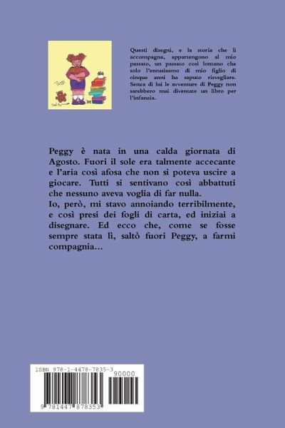 Libro illustrato con illustrazioni a colori. Una delicata storia per bambini accompagnata da deliziosi e semplici disegni che da subito cattureranno l'interesse dei vostri bambini invogliandoli a sognare insieme a Peggy, la graziosa protagonista di queste avventure. Questi disegni, e la storia che li accompagna, appartengono al passato dell'autrice, un passato così lontano che solo l'entusiasmo del figlio di cinque anni ha saputo risvegliare. Senza di lui le avventure di Peggy non sarebbero mai diventate un libro per l'infanzia. Questo semplice lavoro comunicherà sicuramente a tutte le mamme che leggeranno questa storia ai loro bambini, l'emozione che l'autrice ha provato nel leggerla e raccontarla a suo figlio.