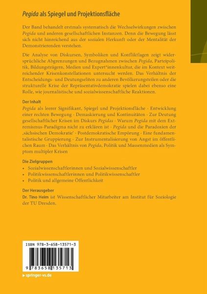 Der Band behandelt erstmals systematisch die Wechselwirkungen zwischen Pegida und anderen gesellschaftlichen Instanzen. Denn die Bewegung lässt sich nicht hinreichend aus der sozialen Herkunft oder der Mentalität der Demonstrierenden verstehen.Die Analyse von Diskursen, Symboliken und Konfliktlagen zeigt widersprüchliche Abgrenzungen und Bezugnahmen zwischen Pegida, Parteipolitik, Bildungsträgern, Medien und Expert_innenkultur, die im Kontext weitreichender Krisenkonstellationen untersucht werden. Das Verhältnis der Entscheidungs- und Deutungseliten zu anderen Bevölkerungsteilen oder die strukturelle Krise der Repräsentativdemokratie spielen dabei ebenso eine Rolle, wie journalistische und sozialwissenschaftliche Reaktionen.