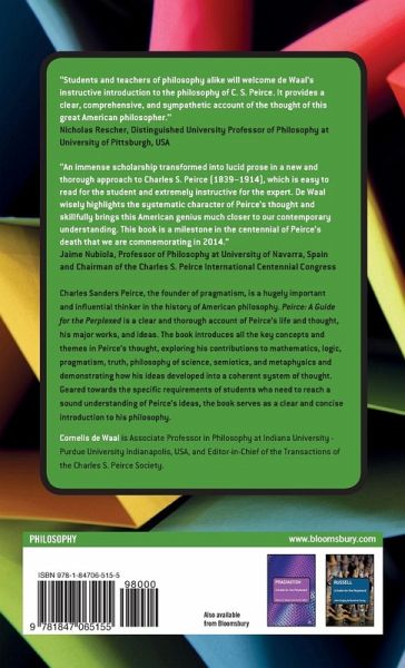Charles Sanders Peirce, the founder of pragmatism, is a hugely important and influential thinker in the history of American philosophy. His philosophical interests were broad and he made significant contributions in several different areas of thought. Moreover, his contributions are intimately connected and his philosophy designed to form a coherent and systematic whole. Peirce: A Guide for the Perplexed is a clear and thorough account of Peirce's life and thought, his major works and ideas, providing an ideal guide to this important and complex thinker. The book introduces all the key concepts and themes in Peirce's thought, exploring his contributions to logic, pragmatism, truth, semiotics and metaphysics and demonstrating how his ideas developed into a coherent system of thought. Geared towards the specific requirements of students who need to reach a sound understanding of Peirce's ideas, the book serves as a clear and concise introduction to his philosophy. This is the idea companion to study of this most influential and challenging of thinkers.