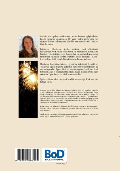 Adamon sanoo: "Hän joka ei ole uskaltanut kohdata pimeyttä ja pelkoa itsessään ei tule koskaan rakastamaan kuten Jumala rakastaa. Pimeys on nähtävä ja ei tule jäädä vain tähän. On uskallettava myös pimeyden tuolle puolen, valoon. On uskallettava nähdä oma valonsa. Oma rohkeutensa, rakkautensa. On uskallettava myöntää, ettei tarina uhrista olekaan asioiden todellinen tila. On hyväksyttävä, että juuri Sinä näet omaa untasi, ei kukaan muu sitä näe sinun silmiesi lävitse. Ja tämä tuo suuren mahtavan vapauden!"