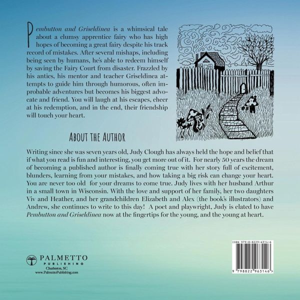 Writing since she was seven years old, Judy Clough has always held the hope and belief that if what you read is fun and interesting, you get more out of it. For nearly 50 years the dream of becoming a published author is finally coming true with her story full of excitement, blunders, learning from your mistakes, and how taking a big risk can change your heart. You are never too old for your dreams to come true. Judy lives with her husband Arthur in a small town in Wisconsin. With the love and support of her family, her two daughters Viv and Heather, and her grandchildren Elizabeth and Alex (the book's illustrators) and Andrew, she continues to write to this day! A poet and playwright, Judy is elated to have Pembutton and Griseldinea now at the fingertips for the young, and the young at heart.