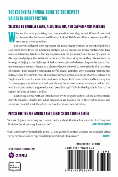 Every year, PEN America Best Debut Short Stories celebrates 12 outstanding stories by today's most promising new fiction writers and the literary magazines that discovered them. Each story comes with commentary by the editors who first published it, explaining what made them pick it and why they were moved to share it with readers.