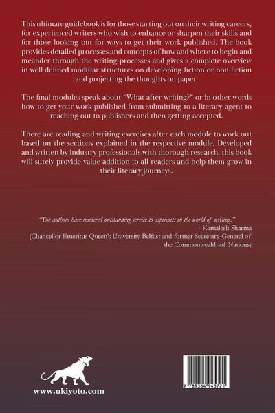 This ultimate guidebook is for those starting out on their writing careers, for experienced writers who wish to enhance or sharpen their skills and for those looking out for ways to get their work published. The book provides detailed processes and concepts of how and where to begin and meander through the writing processes and gives a complete overview in well defined modular structures on developing fiction or non-fiction and projecting the thoughts on paper. The final modules speak about "What after writing?" or in other words how to get your work published from submitting to a literary agent to reaching out to publishers and then getting accepted. There are reading and writing exercises after each module to work out based on the sections explained in the respective module. Developed and written by industry professionals with thorough research, this book will surely provide value addition to all readers and help them grow in their literary journeys.