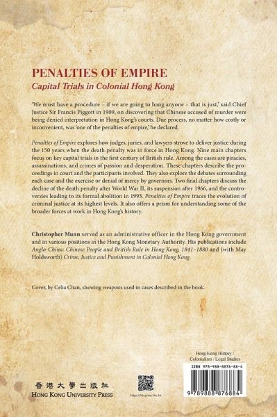 Penalties of Empire explores justice in Hong Kong during 150 years of the death penalty. Chief Justice Sir Francis Piggott emphasized due process in 1909. The book focuses on key trials, public debates, and mercy exercises. It covers the decline, suspension in 1966, and abolition in 1993, tracing criminal justice evolution.