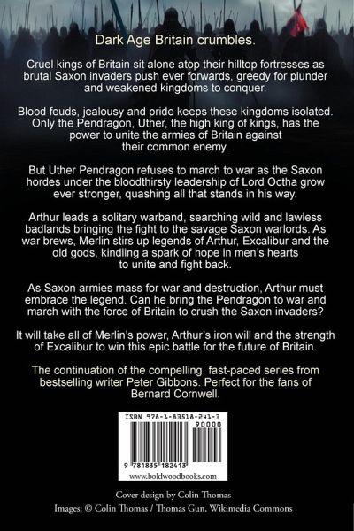 The thrilling next instalment in Peter Gibbons, The Chronicles of Arthur series To save his people, a warrior must become more than a king... Dark Age Britain crumbles. Cruel Kings of Britain sit alone atop their hilltop fortresses as brutal Saxon invaders push ever forwards, greedy for plunder and weakened British kingdoms to conquer. Blood feuds, jealousy, and pride keeps these Kingdoms isolated. Only the Pendragon, Uther, the high King of kings, has the power to unite the armies of Britain against their common enemy. But Uther Pendragon refuses to march to war as the Saxon hordes under the bloodthirsty leadership of Lord Octha grow ever stronger, quashing all that stands in his way. Arthur leads a solitary warband, searching wild and lawless badlands bringing the fight to the savage Saxon warlords. As war brews, Merlin stirs up legends of Arthur, Excalibur, and the old gods, kindling a spark of hope in men's hearts to unite and fight back. As Saxon armies mass for war and destruction, Arthur must embrace the legend. Can he bring the Pendragon to war, and march with the force of Britain to crush the Saxon invaders? It will take all of Merlin's power, Arthur's iron will, and the strength of Excalibur to win this epic battle for the future of Britain. The continuation of the compelling, fast-paced series from bestselling writer Peter Gibbons. Perfect for the fans of Bernard Cornwell. Praise for Peter Gibbons: 'Bristling with intense action, this is the grounded and brutal retelling of Arthurian myth set in the grim landscape of Dark Age Britain.' - Richard Cullen 'A power house of a novel told with the pace of a charging war horse. Well rounded characters brought to vivid life in Britain's Dark Age. Not a book to be missed.' - Adam Lofthouse 'Riveting, page-turning action that shows Arthur growing from a frightened youngster into a confident warlord. A fresh new take on an old legend that readers will find hard to put down.' - Steven A McKay 'Epic, brutal action' - Matthew Harffy 'A gripping tale in which our distant British history is brought to life. A must-read for any Arthurian fan.' - Reader Review 'First class. I could not put this book down. Absolutely riveting. Action packed throughout. I eagerly await the next book in the series.' - Reader Review 'This was full of battles, violence, politics and is a fresh new take on Arthurian legend. It's the first in a series that's left me hungering for more' - Reader Review 'Bloody and brutal, Peter's vivid writing really brings the story to life.' - Donovan Cook 'A superbly atmospheric tale of redemption that pitches the English against Viking raiders and resounds with the fierceness of battle-hardened warriors' - MJ Porter 'Thunderously atmospheric! Gibbons once again proves himself a master of Viking & Dark Age lore.' - Gordon Doherty