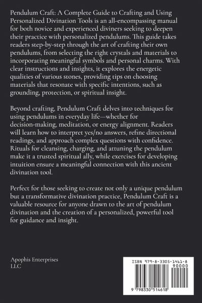 Pendulum Craft: A Complete Guide to Crafting and Using Personalized Divination Tools is an all-encompassing manual for both novice and experienced diviners seeking to deepen their practice with personalized pendulums. This guide takes readers step-by-step through the art of crafting their own pendulums, from selecting the right crystals and materials to incorporating meaningful symbols and personal charms. With clear instructions and insights, it explores the energetic qualities of various stones, providing tips on choosing materials that resonate with specific intentions, such as grounding, protection, or spiritual insight. Beyond crafting, Pendulum Craft delves into techniques for using pendulums in everyday life-whether for decision-making, meditation, or energy alignment. Readers will learn how to interpret yes/no answers, refine directional readings, and approach complex questions with confidence. Rituals for cleansing, charging, and attuning the pendulum make it a trusted spiritual ally, while exercises for developing intuition ensure a meaningful connection with this ancient divination tool. Perfect for those seeking to create not only a unique pendulum but a transformative divination practice, Pendulum Craft is a valuable resource for anyone drawn to the art of pendulum divination and the creation of a personalized, powerful tool for guidance and insight.