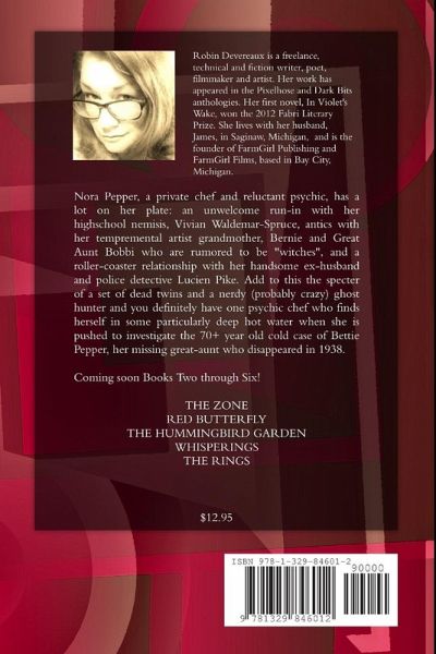 BOOK ONE of the THE NORA PEPPER PARANORMAL SERIES : PENDULUM Nora Pepper, a private chef and reluctant psychic, has a lot on her plate: a run-in with her high school nemesis, Vivian Waldemar-Spruce, dealing with her artist grandmother, Bernie Pepper and Great Aunt Bobbi who are rumored to be "witches" and a roller coaster relationship with her handsome ex-husband and police detective, Lucien Pike. Add to that the specter of a set of dead twins and a nerdy (probably crazy) ghost hunter and you definitely have one psychic chef who finds herself in some particularly deep hot water when she is pushed to investigate the 70+ year old cold case of Bettie Pepper, her missing great-aunt, who disappeared in 1938.