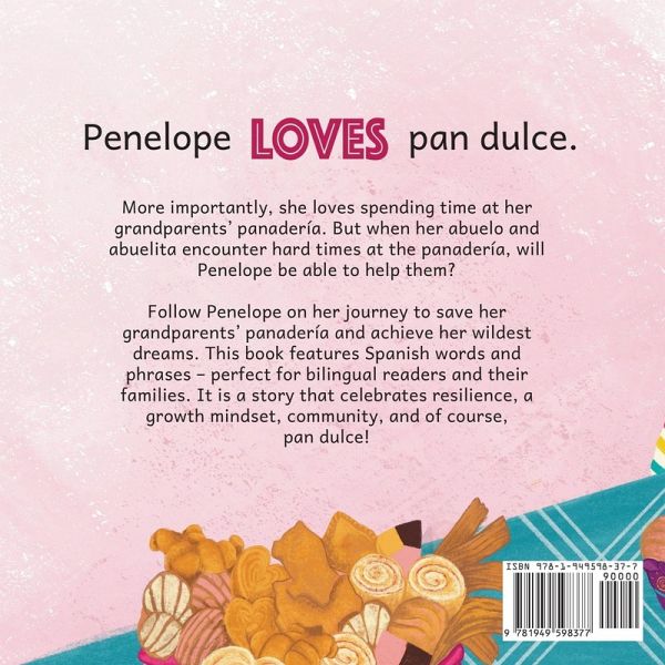 Penelope loves pan dulce! More importantly, she loves spending time at her grandparents' panadería. But when her abuelo and abuelita encounter hard times at the panadería, will Penelope be able to help them? Follow Penelope on her journey to save her grandparents' panadería and achieve her wildest dreams. This book features Spanish words and phrases. Perfect for bilingual readers and their families. It is a story that celebrates resilience, a growth mindset, community, and of course, pan dulce!