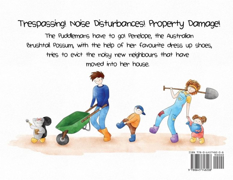 Penelope, the Australian Brushtail Possum, with the help of her favorite dress up shoes, tries to evict the noisy new neighbors that have moved into her house.