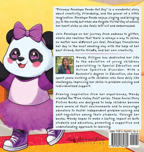 A Delightful Tale of Friendship, Creativity, and Self-Discovery! Penelope Panda loves to sing-her voice dances through the air, brightening every room. But one sunny morning at school, she's met with a surprise: everyone is wearing hats for "Hat Day"...and she forgot her own! As her friends proudly share the stories behind their hats, Penelope feels left out and embarrassed, hiding under her purple coat. Her best friend, Gertie Giraffe, tries to help, but Penelope feels too sad to listen. Will Penelope find her courage to join the fun? With a spark of creativity and a bit of glitter, Penelope discovers that every hat tells a story, and her story is one of a kind. Her transformation into "Princess Penelope" shows readers the joy of self-expression and the power of resilience. Why Kids and Parents Will Love This Book"Penelope Panda Hat Day" celebrates the beauty of friendship and being true to oneself. Filled with playful moments and positive messages about confidence and kindness. Ideal for classroom reading, bedtime, and inspiring kids to embrace their creativity. Watch as Penelope Panda's journey unfolds and inspires children to shine in their own unique ways. "Penelope Panda Hat Day" is a must-have for any child who has ever felt out of place and found their way back through a little courage, a lot of kindness, and a sprinkle of imagination.