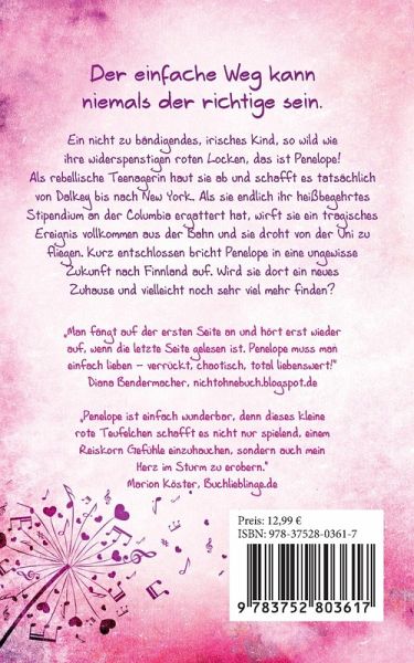 "Der einfache Weg kann niemals der richtige sein"; das ist Penelopes Lebensmotto. Von ihrer Mutter nie wirklich gewollt, entwickelt sie einen eisernen Willen. Sie weiß genau was sie will, sie will weg aus Dalkey, raus in die große weite Welt! Amerika, New York, an der Columbia studieren, das ist ihr Traum, den sie auch in die Tat umsetzt. Dann wirft sie allerdings ein tragisches Ereignis vollkommen aus der Bahn und sie steht wieder vor dem Nichts. Zwar mimt sie immer die Taffe, aber eigentlich fühlt sie sich einsam. Kurz entschlossen bricht sie in eine ungewisse Zukunft nach Finnland auf. Wird sie dort ein neues Zuhause und vielleicht noch sehr viel mehr finden? Mit Romantik kann Penelope nichts anfangen. Zwar hatte sie flüchtige Affären, aber richtig verliebt war sie noch nie und dieses komische kleine Wort mit "L" wird sie sowieso niemals aussprechen. Never ever! Auf gar keinen Fall! Penelope, das verrückte Huhn, wird Euch zum Lachen bringen und sie wird Spuren in Euren Herzen hinterlassen - für alle Zeit.Dieser Roman ist das dritte Buch aus der Herz-Reihe von Josie Kju. Alle Bücher können unabhängig voneinander gelesen werden.