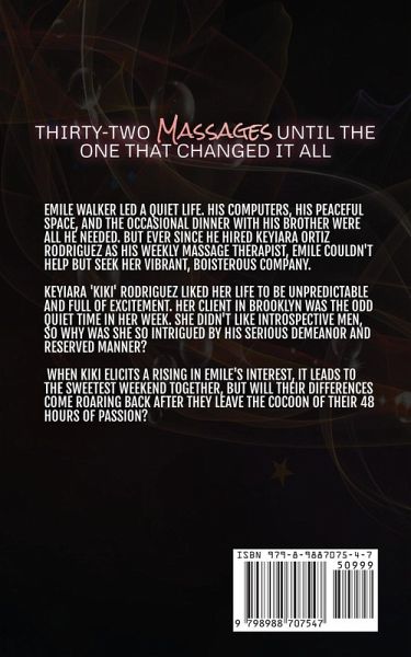 Emile Walker led a quiet life. His computers, his peaceful space, and the occasional dinner with his brother were all he needed. But ever since he hired Keyiara Ortiz Rodriguez as his weekly massage therapist, Emile couldn't help but seek her vibrant, boisterous company. Keyiara 'Kiki' Rodriguez liked her life to be unpredictable and full of excitement. Her client in Brooklyn was the odd quiet time in her week. She didn't like introspective men, so why was she so intrigued by his serious demeanor and reserved manner? When Kiki elicits a rising in Emile's interest, it leads to the sweetest weekend together, but will their differences come roaring back after they leave the cocoon of their 48 hours of passion? This story was part of the Current Anthology published in November 2022.
