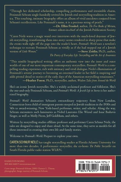 Peninnah’s World is the biography-in-stories of the iconic Jewish storyteller and folkloristPeninnah Schram. In vivid scenes, it dramatizes Schram’s trajectory from brilliant daughter of Orthodox immigrant parents in New London, Connecticut, to acclaimed performer, teacher, scholar and colleague of luminaries including Elie Wiesel, Isaac Bashevis Singer and Molly Picon.