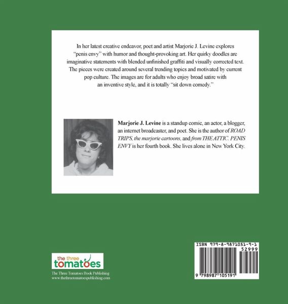 In her latest creative endeavor, poet and artist Marjorie J. Levine explores "penis envy" with humor and thought-provoking art. Her quirky doodles are imaginative statements with blended unfinished graffiti and visually corrected text. The pieces were created around several trending topics and motivated by current pop culture. The images are for adults who enjoy broad satire with an inventive style, and it is totally "sit down comedy."