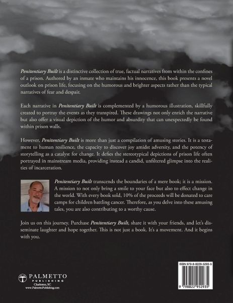 Discover Humor Behind Bars: Real-Life Tales & Comedic Illustrations From Inside the Big House. Unearth the lighter side of prison life. Delve into the pages of Penitentiary Built, a unique compilation of true, factual stories from the inside of a prison. Authored by an innocent inmate, this book offers a refreshing perspective on prison life that veers away from the usual narrative of fear and despair. Instead, it brings to light the brighter, funnier sides of a world that is often shrouded in darkness and misconceptions. Each story in Penitentiary Built is accompanied by a comedic drawing, masterfully crafted to depict the events as they unfolded. These illustrations serve not only to enhance the narrative but also to provide a visual representation of the humor and absurdity that can be found even in the most unlikely places. This book is not just about laughter and light-heartedness, though. It is a testament to the resilience of the human spirit, the ability to find joy in the midst of adversity, and the power of storytelling as a tool for change. It challenges the stereotypical portrayals of prison life that we often see in Hollywood and on television, offering instead a raw, unfiltered look at the realities of incarceration. But Penitentiary Built is more than just a book. It is a mission. A mission to bring a smile to your face, yes, but also to make a difference in the world. With every purchase of this book, 10% of the sales will be donated to care camps for children with cancer. This means that as you immerse yourself in these humorous tales, you are also contributing to a noble cause. So, come and join us on this journey. Buy Penitentiary Built, share it with your friends, and let's spread laughter and hope together. This isn't just a book. It's a movement. And it starts with you.
