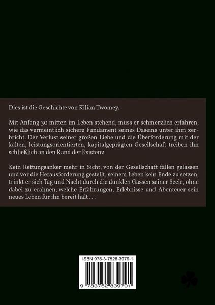 Dies ist die Geschichte von Kilian Twomey.Mit Anfang 30 mitten im Leben stehend, muss er schmerzlich erfahren, wie das vermeintlich sichere Fundament seines Daseins unter ihm zerbricht. Der Verlust seiner großen Liebe und die Überforderung mit der kalten, leistungsorientierten, kapitalgeprägten Gesellschaft treiben ihn schließlich an den Rand der Existenz.Kein Rettungsanker mehr in Sicht, von der Gesellschaft fallen gelassen und vor die Herausforderung gestellt, seinem Leben kein Ende zu setzen, trinkt er sich Tag und Nacht durch die dunklen Gassen seiner Seele, ohne dabei zu erahnen, welche Erfahrungen, Erlebnisse und Abenteuer sein neues Leben für ihn bereit hält ...