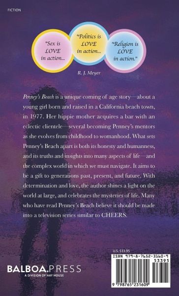 Penney's Beach is a unique coming of age story-about a young girl born and raised in a California beach town, in 1977. Her hippie mother acquires a bar with an eclectic clientele-several becoming Penney's mentors as she evolves from childhood to womanhood. What sets Penney's Beach apart is both its honesty and humanness, and its truths and insights into many aspects of life-and the complex world in which we must navigate. It aims to be a gift to generations past, present, and future. With determination and love, the author shines a light on the world at large, and celebrates the mysteries of life. Many who have read Penney's Beach believe it should be made into a television series similar to CHEERS.