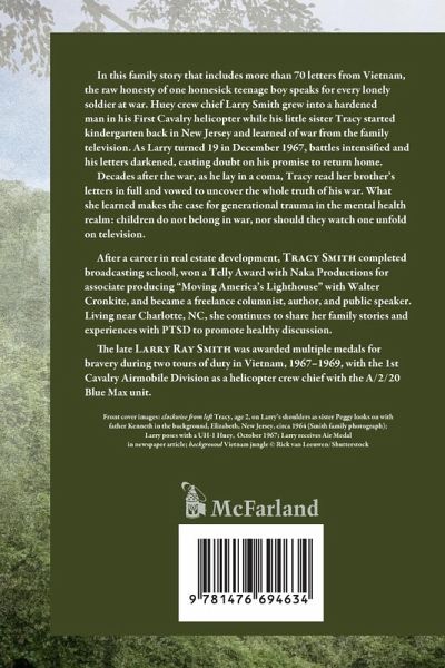 In this family story that includes more than 70 letters from Vietnam, the raw honesty of one homesick teenage boy speaks for every lonely soldier at war. Huey crew chief Larry Smith grew into a hardened man in his First Cavalry helicopter while his little sister Tracy started kindergarten back in New Jersey and learned of war from the family television. As Larry turned 19 in December 1967, battles intensified and his letters darkened, casting doubt on his promise to return home. Decades after the war, as he lay in a coma, Tracy read her brother's letters in full and vowed to uncover the whole truth of his war. What she learned makes the case for generational trauma in the mental health realm: children do not belong in war, nor should they watch one unfold on television.