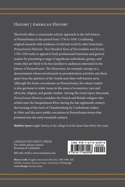 Pennsylvania Histories examines the state’s history over two hundred years through the study of a number of somewhat obscure yet significant individuals and events. The narrative often confronts issues pertaining to ethnicity, gender, and the social class structure.