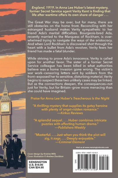 England, 1919. In Anna Lee Huber's latest mystery, former Secret Service agent Verity Kent is finding that life after wartime offers its own share of danger . . . The Great War may be over, but for many, there are still obstacles on the home front. Reconciling with her estranged husband makes Verity sympathetic to her friend Ada's marital difficulties. Bourgeois-bred Ada, recently married to the Marquess of Rockham, is overwhelmed trying to navigate the ways of the aristocracy. And when Lord Rockham is discovered shot through the heart with a bullet from Ada's revolver, Verity fears her friend has made a fatal blunder. While striving to prove Ada's innocence, Verity is called upon for another favor. The sister of a former Secret Service colleague has been killed in what authorities believe was a home invasion gone wrong. The victim's war work-censoring letters sent by soldiers from the front-exposed her to sensitive, disturbing material. Verity begins to suspect these two unlikely cases may be linked. But as the connections deepen, the consequences-not just for Verity, but for Britain-grow more menacing than she could have imagined. Praise for Anna Lee Huber's Treacherous Is the Night "A thrilling mystery that supplies its gutsy heroine with plenty of angst-ridden romance." -Kirkus Reviews "A splendid sequel. . . . Huber combines intricate puzzles with affecting human drama." -Publishers Weekly "Masterful. . . . Just when you think the plot will zig, it zags. . . . Deeply enjoyable." -Criminal Element