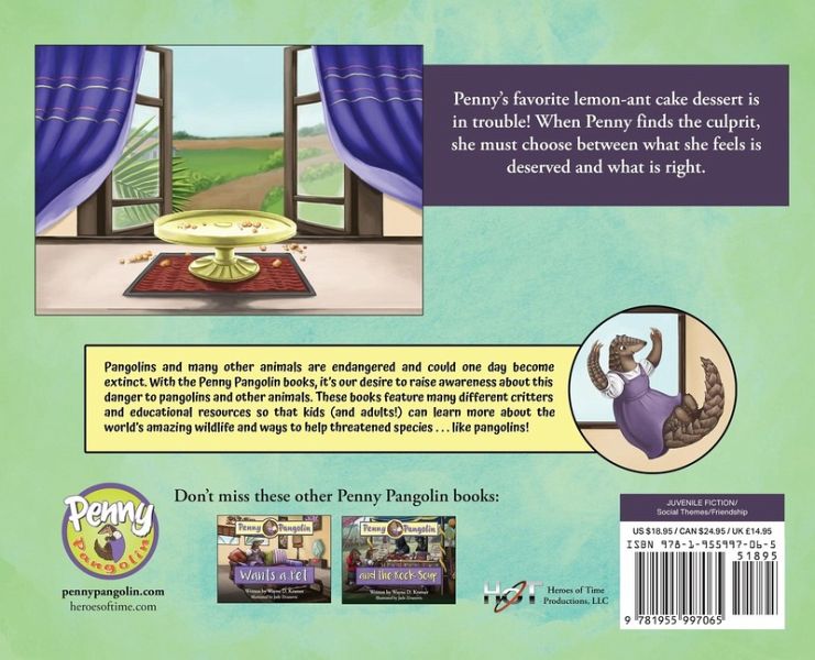 Wayne D. Kramer lives in the southern Indiana countryside with his wife and kids. The idea for Penny Pangolin came to Wayne one day while discussing an interest in creating a series of children's picture books with his family. Pangolins, in particular, had always fascinated the kids. Wayne enjoys brainstorming new Penny ideas with his kids over smoothies at the coffee shop. He graduated from the University of Louisville in 2005 with a Bachelor of Business Science. He has visited nearly 40 countries and 25 states in the US. He especially loved visiting Hobbiton in New Zealand. Wayne is also author of the "Heroes of Time" adventure fantasy novel series. All of his works, including signed copies, are available from shop.heroesoftime.com.