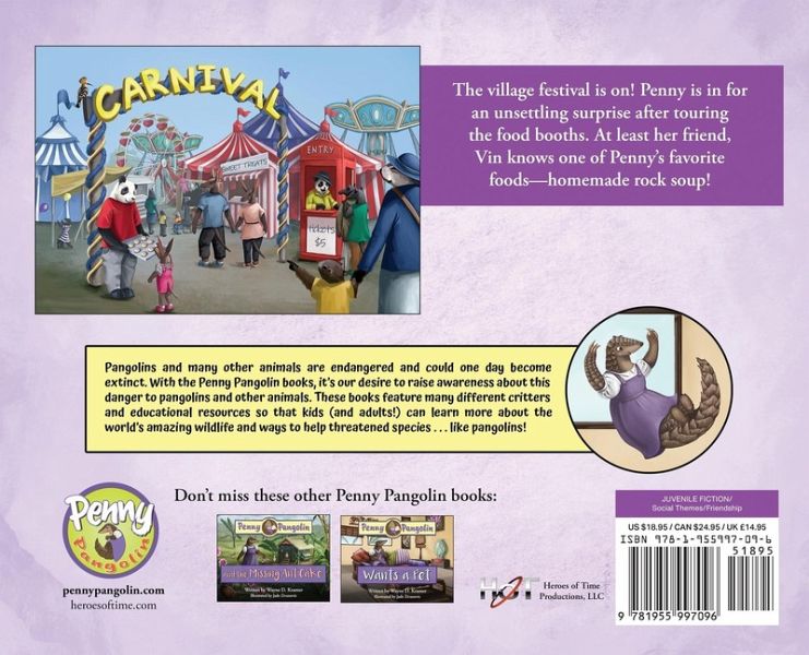 The village festival is on! Penny is in for an unsettling surprise when she unexpectedly eats something that makes pangolins sick. Her friend comes to the rescue with a remedy only a pangolin could appreciate--homemade rock soup!