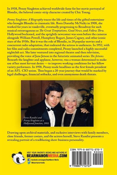 In 1938, Penny Singleton achieved worldwide fame for her movie portrayal of Blondie, the beloved comic-strip character created by Chic Young. Penny Singleton: A Biography traces the life and times of the gifted entertainer who brought Blondie to cinematic life. Born Dorothy McNulty in 1908, she worked for years in vaudeville, eventually progressing to Broadway for such musical extravaganzas as The Great Temptations, Good News, and Follow Thru. Hollywood beckoned, and the sprightly newcomer was soon before the cameras alongside William Powell, Humphrey Bogart, James Cagney, and other iconic stars of the 1930s. But it was the role of Blondie, in 28 popular movies and a concurrent radio adaptation, that endeared the actress to audiences. In 1952, with her film and radio commitments completed, Penny launched a highly successful nightclub act. She later ventured into regional theatre and then television, providing the voice of Jane Jetson in the futuristic animated series The Jetsons. Beneath the laughter and applause, however, was a woman determined to make use of her most fervent desire - to improve working conditions for her fellow variety performers. In 1958, Penny made headlines as the first female president of an AFL-CIO union. Thus began a 20-year journey that would be marked by legal challenges, financial setbacks, and even anonymous death threats. Drawing upon archival materials, and exclusive interviews with family members, close friends, former costars, and the actress herself, Steve Randisi presents a revealing portrait of a trailblazing show-business personality.