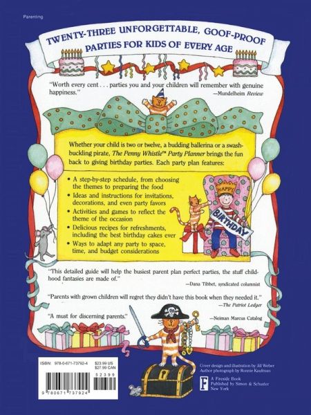 TWENTY-THREE UNFORGETTABLE, GOOF-PROOF PARTIES FOR KIDS OF EVERY AGE Whether your child is two or twelve, a budding ballerina or a swashbuckling pirate, The Penny Whistle Party Planner brings the fun back to giving birthday parties. Each party plan features: * A step-by-step schedule, from choosing the themes to preparing the food * Ideas and instructions for invitations, decorations, and even party favors * Activities and games to reflect the theme of the occasion * Delicious recipes for refreshments, including the best birthday cakes ever * Ways to adapt any party to space, time, and budget considerations