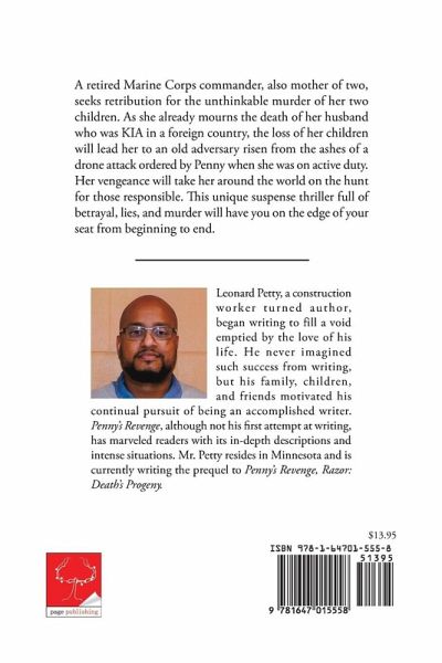 A retired Marine Corps commander, also mother of two, seeks retribution for the unthinkable murder of her two children. As she already mourns the death of her husband who was KIA in a foreign country, the loss of her children will lead her to an old adversary risen from the ashes of a drone attack ordered by Penny when she was on active duty. Her vengeance will take her around the world on the hunt for those responsible. This unique suspense thriller full of betrayal, lies, and murder will have you on the edge of your seat from beginning to end.