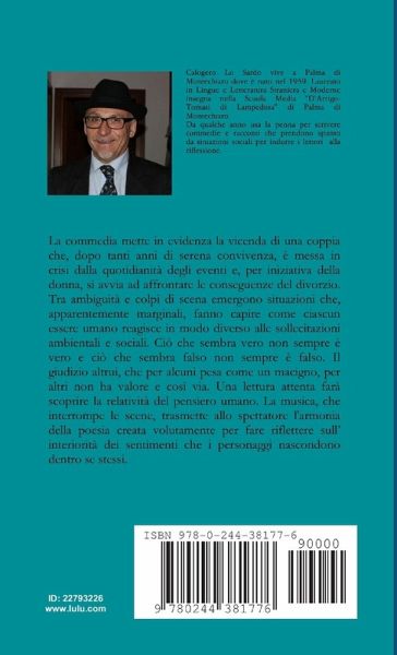La commedia mette in evidenza la vicenda di una coppia che, dopo tanti anni di serena convivenza, è messa in crisi dalla quotidianità degli eventi e, per iniziativa della donna, si avvia ad affrontare le conseguenze della separazione. Tra ambiguità e colpi di scena emergono situazioni che, apparentemente marginali, fanno capire come ciascun essere umano reagisce in modo diverso alle sollecitazioni ambientali e sociali. Ciò che sembra vero non sempre è vero e ciò che sembra falso non sempre è falso. Il giudizio altrui, che per alcuni pesa come un macigno, per altri non ha valore e così via. Una lettura attenta farà scoprire la relatività del pensiero umano. La musica, che interrompe le scene, trasmette allo spettatore l'armonia della poesia creata volutamente per fare riflettere sull' interiorità dei sentimenti che i personaggi nascondono dentro se stessi. La commedia è stata recitata dall'autore con una compagnia di dilettanti ed è visibile su Youtube digitando: https://youtu.be/05ikLaCtZ_8
