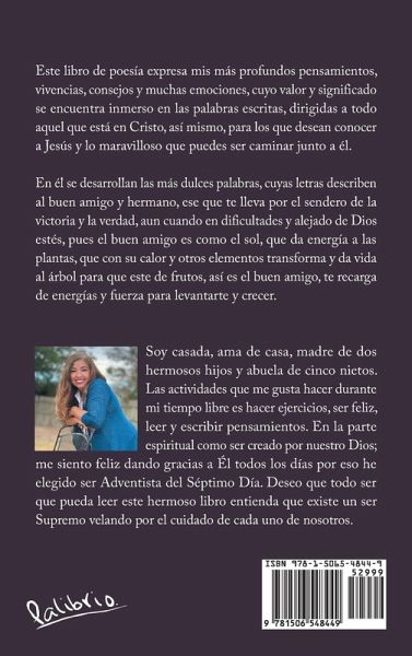 Este libro de poesía expresa mis más profundos pensamientos, vivencias, consejos y muchas emociones, cuyo valor y significado se encuentra inmerso en las palabras escritas, dirigidas a todo aquel que está en Cristo, así mismo, para los que desean conocer a Jesús y lo maravilloso que puedes ser caminar junto a él. En él se desarrollan las más dulces palabras, cuyas letras describen al buen amigo y hermano, ese que te lleva por el sendero de la victoria y la verdad, aun cuando en dificultades y alejado de Dios estés, pues el buen amigo es como el sol, que da energía a las plantas, que con su calor y otros elementos transforma y da vida al árbol para que este de frutos, así es el buen amigo, te recarga de energías y fuerza para levantarte y crecer.