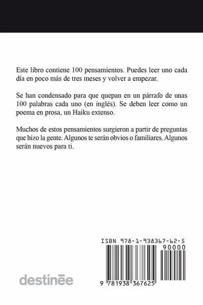 El libro está formado por 100 pensamientos, en 100 palabras (en el original), cubriendo 100 páginas (en el original). Puedes leer una página cada día durante tres meses y volver a empezar. Se han condensado para que quepan en un párrafo de unas 100 palabras cada uno (en inglés). Se deben leer como un poema en prosa, un Haiku extenso.