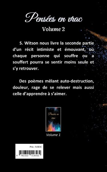 S. Witson nous livre la seconde partie d'un récit intimiste et émouvant, où chaque personne qui souffre ou a souffert pourra se sentir moins seule et s'y retrouver.Des poèmes mêlant auto-destruction, douleur, rage de se relever mais aussi celle d'apprendre à s'aimer.