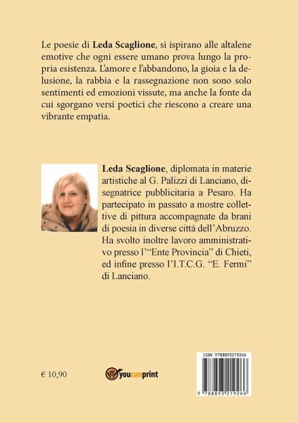 Le poesie di Leda Scaglione, si ispirano alle altalene emotive che ogni essere umano prova lungo la propria esistenza. L'amore e l'abbandono, la gioia e la delusione, la rabbia e la rassegnazione non sono solo sentimenti ed emozioni vissute, ma anche la fonte da cui sgorgano versi poetici che riescono a creare una vibrante empatia.