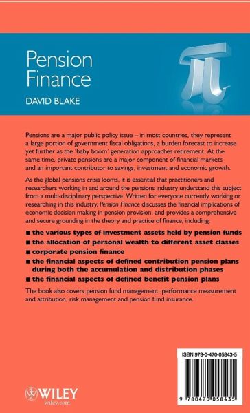 Pensions are a major public policy issue - in most countries, they represent a large portion of government fiscal obligations, a burden forecast to increase yet further as the 'baby boom' generation approaches retirement. At the same time, private pensions are a major component of financial markets and an important contributor to savings, investment and economic growth. As the global pensions crisis looms, it is essential that practitioners and researchers working in and around the pensions industry understand this subject from a multi-disciplinary perspective. Written for everyone currently working or researching in this industry, Pension Finance discusses the financial implications of economic decision making in pension provision, and provides a comprehensive and secure grounding in the theory and practice of finance, including: * the various types of investment assets * the allocation of personal wealth to different asset classes * corporate pension finance * the financial aspects of defined contribution pension plans during both the accumulation and distribution phases * the financial aspects of defined benefit pension plans The book also covers important aspects of the role of pension funds and pension fund management such as performance measurement and attribution, risk management and insurance.