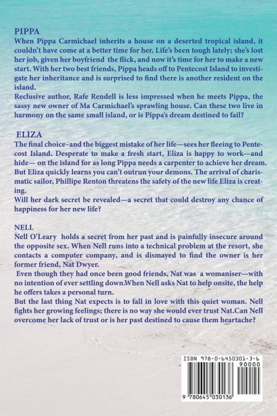Pentecost Island...where romance entices and secrets unfold. Pentecost Island series : Books 1-3 in a boxed set From best selling author, Annie Seaton, three beautiful stories of female friendships, and the unbreakable bond that sees friends stay together through the ups and downs of life. Pippa: When Pippa Carmichael inherits a house on a deserted tropical island, it couldn't have come at a better time for her. Life's been tough lately; she's lost her job, given her boyfriend the flick, and now it's time for her to make a new start. With her two best friends, Pippa heads off to Pentecost Island to investigate her inheritance and is surprised to find there is another resident on the island. Reclusive author, Rafe Rendell, is not impressed when a boatload of women turns up on his island, interrupting his peaceful existence. He is less impressed when he meets Pippa, the sassy new owner of Ma Carmichael's sprawling house. ¿¿¿¿¿¿¿Can these two live in harmony on the same small island, or is Pippa's dream destined to fail? Eliza The final choice-and the biggest mistake of her life-sees her fleeing to Pentecost Island. Desperate to make a fresh start, Eliza is happy to work-and hide- on the island for as long Pippa needs a carpenter to achieve her dream. Having friends around to support her through tough times is a bonus. But Eliza quickly learns you can't outrun your demons. The arrival of charismatic sailor, Phillipe Renton threatens the safety of the new life Eliza is creating. Living his life on the oceans and travelling the world, Phillipe doesn't do relationships, but the attraction to vulnerable Eliza is impossible to resist. Will her dark secret be revealed-a secret that could destroy any chance of happiness for her new life? Nell Nell O'Leary sees the world in a logical way, and she's content managing her friend, Pippa's eco-resort. She holds a secret from her past and is painfully insecure around the opposite sex. When Nell runs into a technical problem at the resort, she contacts a computer company, and is dismayed to find the owner is her former friend, Nat Dwyer. Nat was at university with her but that's the only thing he and Nell have in common. Even though they had once been good friends, Nat was a womaniser-with no intention of ever settling down.When Nell asks Nat to help onsite, the help he offers takes a personal turn. But the last thing Nat expects is to fall in love with this quiet woman. Nell fights her growing feelings; there is no way she would ever trust Nat. Can Nell overcome her lack of trust or is her past destined to cause them heartache?