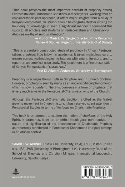 «This book provides the most important account of prophecy among Pentecostal and Charismatic Christians in recent years. Working from an empirical-theological approach, it offers major insights from a study of Kenyan Pentecostals. Dr. Muindi should be congratulated for moving the boundary of knowledge in such a significant manner. I commend this study to all scholars and students of Pentecostalism and Christianity in Africa as worthy of serious attention.» - Prof Dr Mark J. Cartledge, Director of the Center for Renewal Studies, Regent University School of Divinity «This is a carefully constructed study of prophecy in African Pentecos¬talism, a subject little known in academia. It takes meticulous care to ensure correct methodologies, to interact with extant literature, and to report on an empirical case study. The result here is a fine presentation of Kenyan Pentecostalism's practices.» - Prof Dr Allan H. Anderson, University of Birmingham