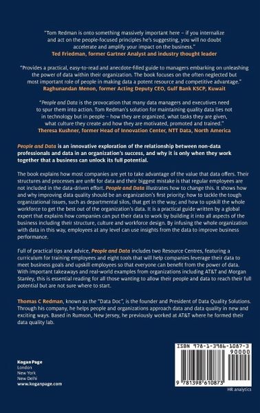 People and Data is an innovative exploration of the relationship between non-data professionals and data in an organization's success, and why it is only when they work together that a business can unlock its full potential. This book explains how most companies are yet to take advantage of the value that data offers. Their structures and processes are unfit for data and their biggest mistake is that regular employees are not included in the data-driven effort. People and Data illustrates how to change this. It shows how and why improving data quality should be an organization's first priority, how to tackle the tough organizational issues, such as departmental silos, that get in the way and how to upskill the whole workforce to get the best out of the organization's data. It is a practical guide written by a global expert which explains how companies can put their data to work by building it into all aspects of the business including their structure, culture and workforce design. By infusing the whole organization with data in this way employees at any level can use insights from the data to improve business performance. Full of practical tips and advice, People and Data includes a Resource Centre featuring a curriculum for training employees, and eight tools that will help companies to leverage their data to meet their business goals and upskill their employees so that everyone can benefit from the power of data. With important takeaways and real-world examples from organizations including AT&T and Morgan Stanley, this book is essential reading for all those wanting to allow their people and data to reach their full potential but are not sure where to start.