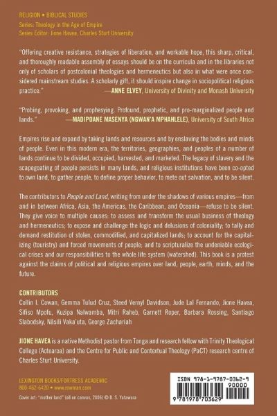 Empires rise and expand by taking lands and resources and by enslaving the bodies and minds of people. Even in this modern era, the territories, geographies, and peoples of a number of lands continue to be divided, occupied, harvested, and marketed. The legacy of slavery and the scapegoating of people persists in many lands, and religious institutions have been co-opted to own land, to gather people, to define proper behavior, to mete out salvation, and to be silent. The contributors to People and Land, writing from under the shadows of various empires-from and in between Africa, Asia, the Americas, the Caribbean, and Oceania-refuse to be silent. They give voice to multiple causes: to assess and transform the usual business of theology and hermeneutics; to expose and challenge the logics and delusions of coloniality; to tally and demand restitution of stolen, commodified and capitalized lands; to account for the capitalizing (touristy) and forced movements of people; and to scripturalize the undeniable ecological crises and our responsibilities to the whole life system (watershed). This book is a protest against the claims of political and religious empires over land, people, earth, minds, and the future.