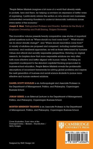 This innovative volume presents twenty comparative case studies of important global questions, such as 'Where should our food come from?' 'What should we do about climate change?' and 'Where should innovation come from?' A variety of solutions are proposed and compared, including market-based, economic, and neoliberal approaches, as well as those determined by humane values and ethical and socially responsible perspectives. Drawing on original research, its chapters show that more responsible solutions are very often both more effective and better aligned with human values. Providing an important counterpoint to the standard capitalist thinking propounded in business school education, People Before Markets reveals the problematic assumptions of incumbent frameworks for solving global problems and inspires the next generation of business and social science students to pursue more effective and human-centered solutions.