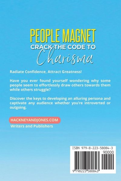 Become a social butterfly and captivate your audience! Have you ever struggled to feel attractive, confident, or charming in social situations? Are you constantly at a loss for words when speaking to new people? Would you love to find new ways to shine? Have you tried various approaches to increase your social skills, yet none of them seem to work? Don't take it personally; becoming charismatic can be difficult and traditional advice often fails to address this challenge. "People Magnet: Crack The Code To Charisma" offers you a new opportunity to transform your social skills and become the life of any party! People will be hanging on your every word. This friendly, helpful book offers you a step-by-step (no fluff!) guide for building an interesting and attractive personality and broadening your life experiences along the way! Brimming with easy-to-implement practical tips and strategies, you will easily overcome social anxiety, form strong connections with others and feel more confident than ever in any social situation. Learn the secrets to speaking clearly, exuding confidence, and using body language effectively. Are you ready? Take control of your life once and for all.